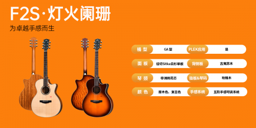 在卓越手感和工艺之上,F2S·灯火阑珊的音色同样出色。它选用了经过HTT高温烘烤技术处理的北美进口Sitka云杉单板作为面板 ,搭配音色介于桃花芯木与玫瑰木之间的古夷苏木作为背侧板 。这使得它的声音在卡普马(Kepma)以往清亮的特点上,增加了更浑厚、温暖的低音和共鸣,无论是细腻的指弹还是激情的弹唱,都能完美胜任,成为了一位真正的“全能选手” 。