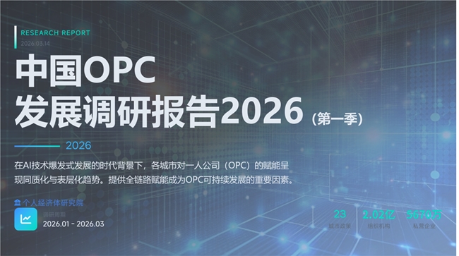 研讨会上,主办方还正式发布了《年度OPC高质量发展蓝皮书》编撰计划和“OPC赋能联盟”行动计划,标志着OPC的理论研究与实践赋能将迈入更加系统化的新阶段。(个人经济体研究院 马方)