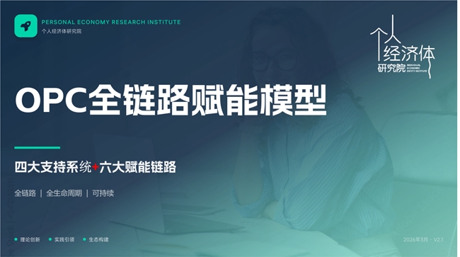个人经济体理论创始人王万军指出:“OPC本质上是个体创业者,是典型的个人经济体。但值得注意的是,许多个人经济体与AI的关系并不大。”基于多年研究,他进一步提出,如果能把OPC放在“个人经济体”这一更宏大的视角下来审视,我们对如何赋能OPC,将会产生颠覆性的认知。